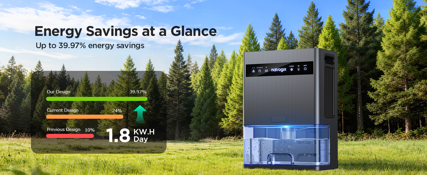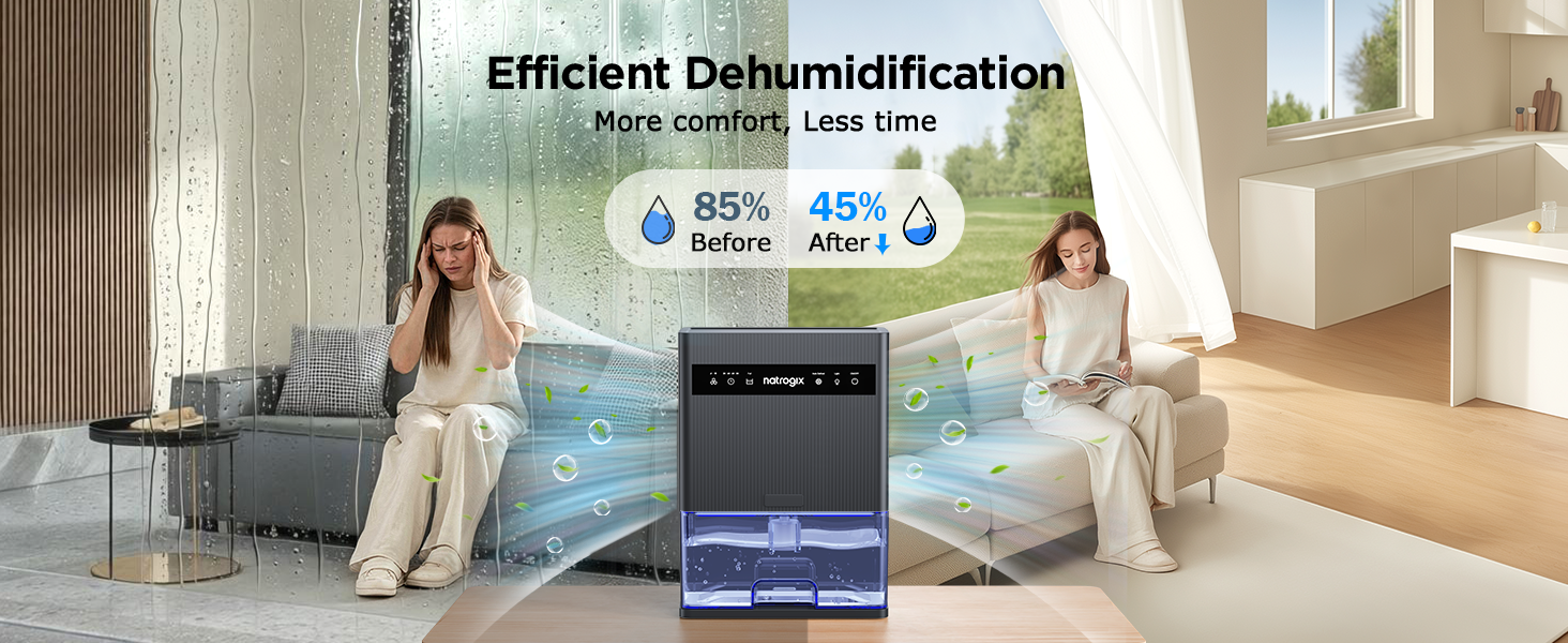 Natrogix CS3 Quiet Dehumidifier for 1000 sq. ft. with 106 OZ Water Tank, Auto Shut Off, Timer, Sleep Mode, 7 Color Light, Gray
